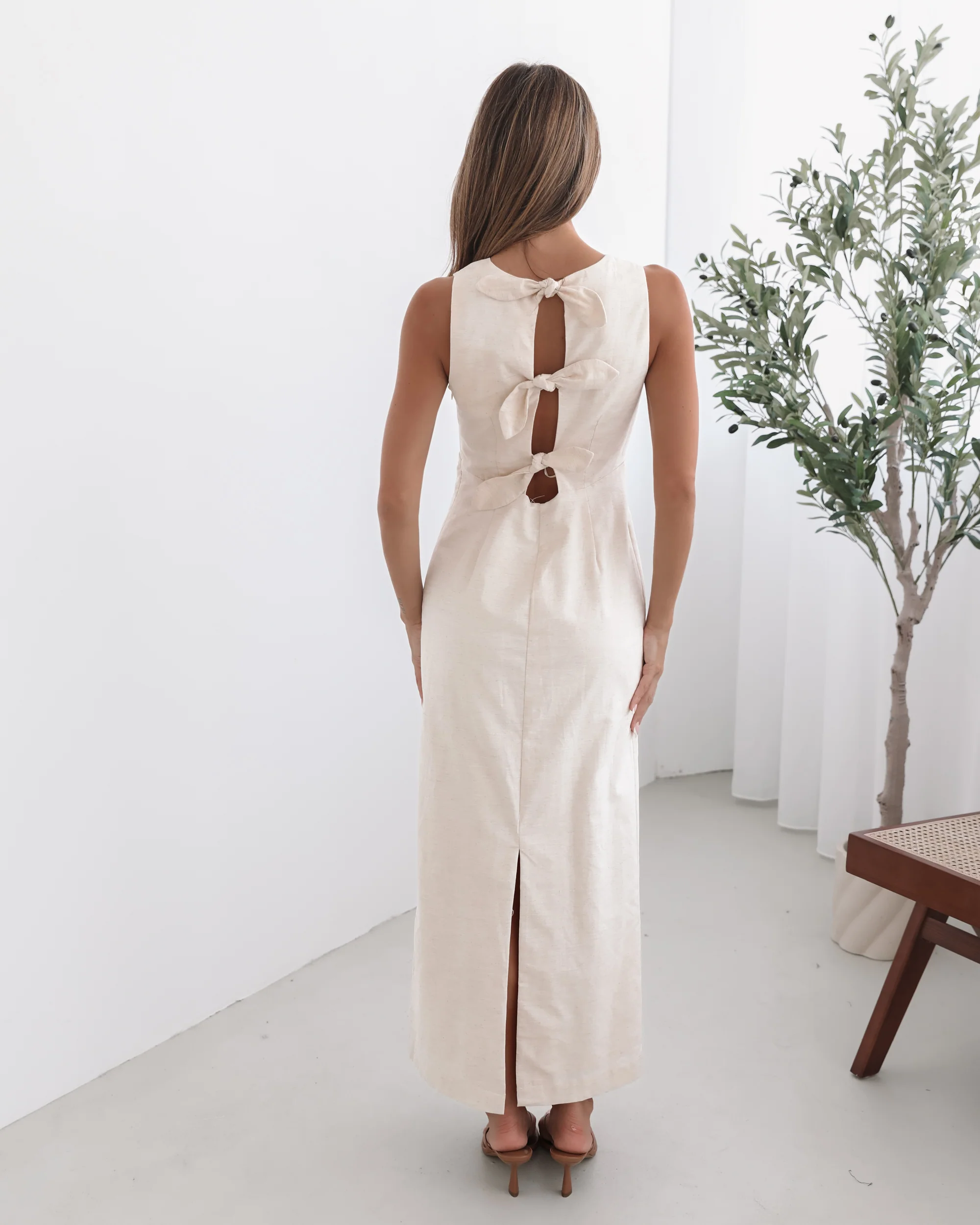 Our Abriana Dress comes in a cream colour. Understated yet undeniably captivating, this number is designed with a plunge neckline, straight skirt and midaxi length hem. Complete the look with sleek nude heels for an elongating effect and pearl drop earrings for an air of vintage romance!
