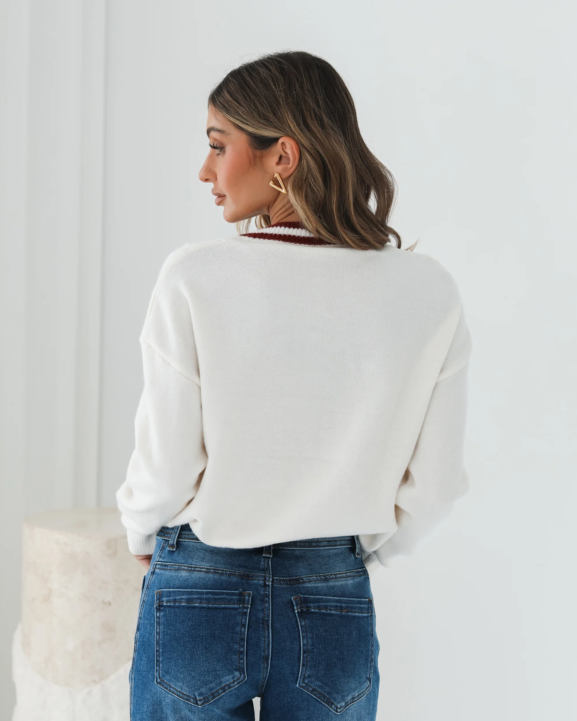 Our Kanoe Knit comes in a cream base with striking red text details. Channel a casual street-chic vibe with this piece, designed with a round neckline, long sleeves, and a relaxed fit for effortless comfort. Elevate the look by pairing it with a pleated skirt and ankle boots.